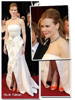 | Nicole Kidman apareceu em Dior Haute Couture. Apesar dos comentários não terem sido os mais favoráveis, eu gostei desta inspiração quimono. |